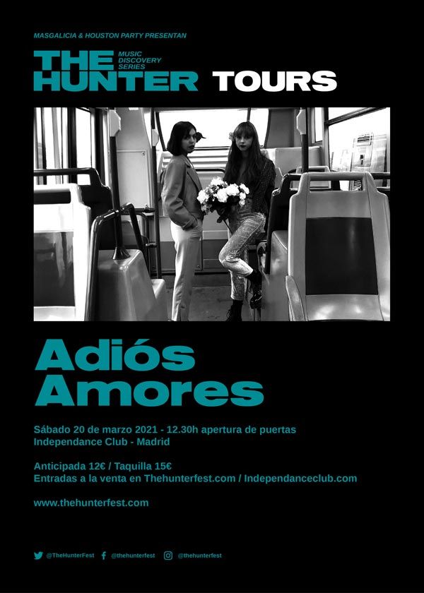 Las andaluzas Adiós Amores actuarán el próximo 20 de marzo en Madrid. Su concierto tendrá lugar en la sala Independance Club y formará parte del ciclo The Hunter “Music Discovery Series”, el escaparate de artistas emergentes nacionales e internacionales que han creado conjuntamente Masgalicia y Houston Party.