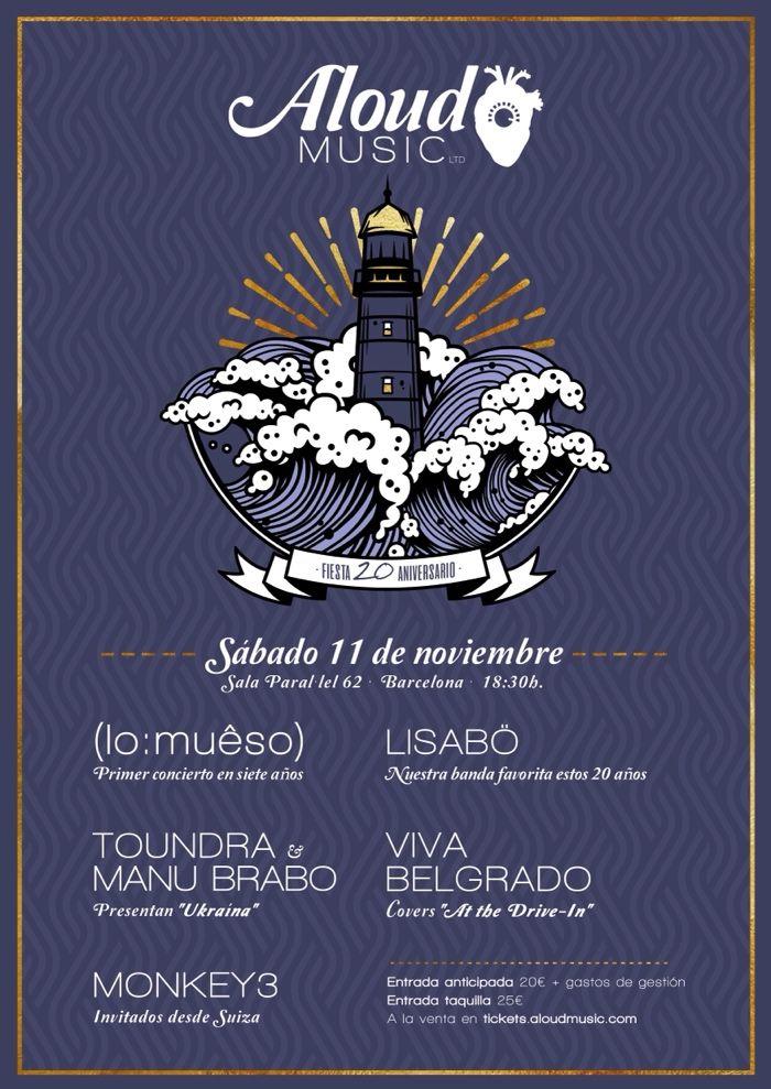 Se unen para la fiesta 2 de los proyectos más importantes de la historia de Aloud. Por un lado, Viva Belgrado, que se atreverán a versionar a ¡¡¡At the Drive-In!!!, pocas fechas antes de lanzar su nuevo trabajo que, esta vez, será autoeditado. Y como a una celebración así no le puede faltar una gran vuelta (en 2013 fueron The Joe K-Plan), esta vez serán (lo:muêso) quienes, tras 7 años de ausencia, se suban a un escenario para deleitarnos con su noise rock salvaje, desbocado y siempre divertido.
