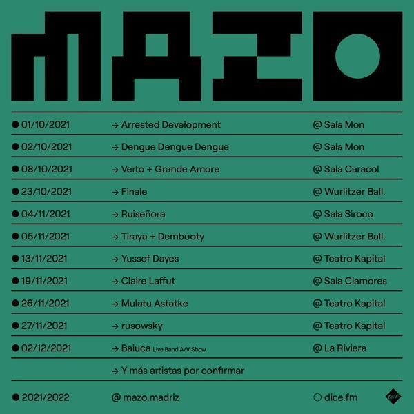 Hace tan solo unas semanas anunciábamos la primera traca de conciertos de lo que será la segunda edición de MAZO Madriz, un ciclo de conciertos que conseguimos celebrar el pasado invierno en la capital, y que de cara al próximo otoño-invierno retomamos ampliando la nómina de salas de Madrid y con artistas internacionales y nacionales de renombre.