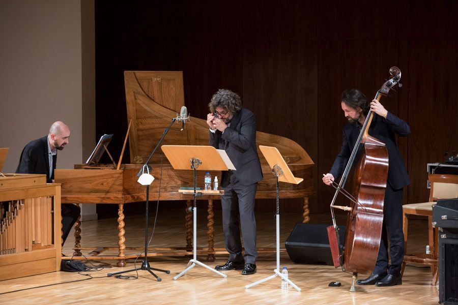 El pasado viernes 5 de febrero tuvo lugar el concierto Bach and Bach, protagonizado por Pablo Martín Caminero, contrabajo, Daniel Oyarzabal, teclas y Antonio Serrano, armónica, en la sala de Cámara del Auditorio Nacional.