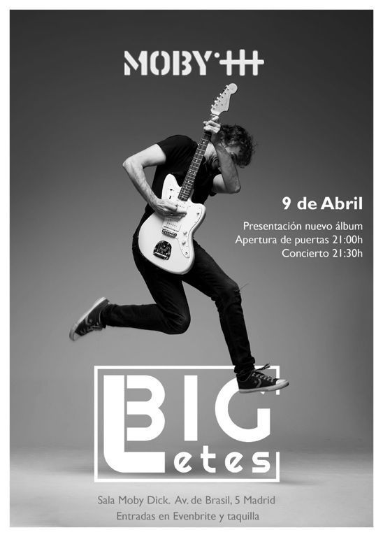 Big Letes es el alter ego de Carlos Saiz. Más de 20 años son los que lleva componiendo y tocando con varios grupos. La mayor crisis de su vida le hizo conectar con su interior y sacar su lado más salvaje y emocional en canciones enérgicas y personales. Así nace Big Letes y ahora nos presenta su segunda larga duración en un concierto que será el próximo 9 de Abril en la mítica sala madrileña Moby Dick.