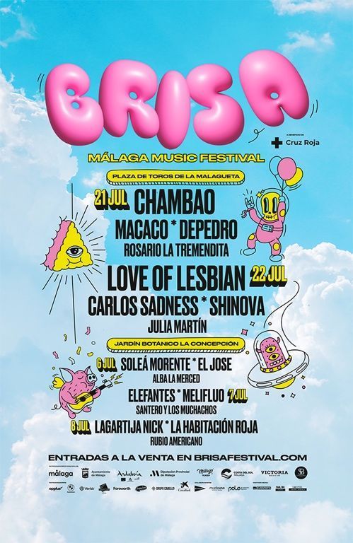 Brisa es un festival al aire libre que tiene como objetivo traer a Málaga lo mejor del panorama musical nacional, uniendo en su programación todo tipo de géneros musicales: pop, rock, indie, música urbana… Tras el éxito de su primera edición, celebrada en agosto de 2021, Brisa vuelve para llenar el verano malagueño de música en directo.