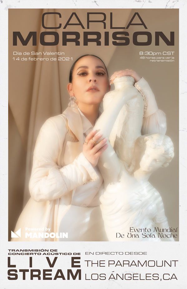 Este tan esperado set en vivo de Carla Morrison será una experiencia inolvidable en la que tendrás primera fila mientras celebramos el amor con nuestros seres queridos, amigos y familiares en el día de San Valentín a las 8:30 PM hora de la CDMX. El concierto incluirá canciones clásicas de los queridos álbumes de Carla a lo largo de su extraordinaria carrera. Los boletos se dividen en tres categorías:
