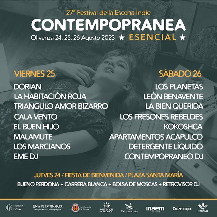 Contempopránea es, desde hace 27 años, una de las principales referencias del calendario de festivales españoles, por su coherencia artística, por ser festival pionero en España que mantiene su compromiso con la escena indie nacional. Olivenza (Badajoz) acogerá el “gourmet de los festivales indies” en su marco incomparable.