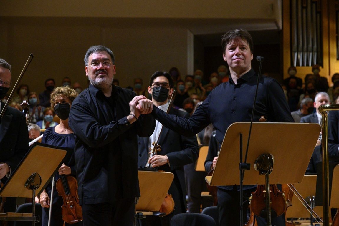 Aparecían en escena pues, la NDR Elbphilarmonie Orchester, dirigidos en esta ocasión por su director principal, Alan Gilbert y acompañando en la primera parte al violinista Joshua Bell.