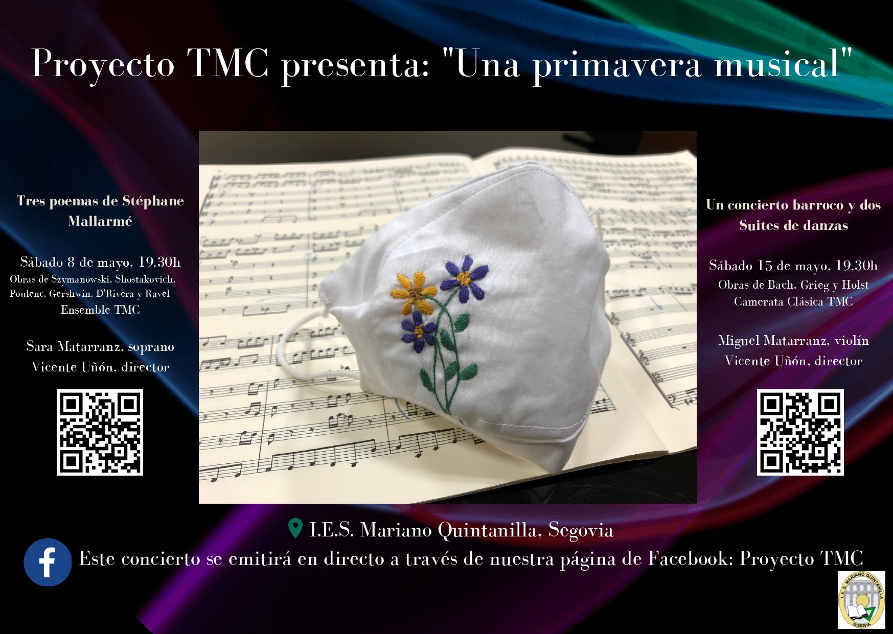 Los conciertos tendrán lugar en el I.E.S. “Mariano Quintanilla” (Segovia) y serán retransmitidos en streaming a través del Facebook de la agrupación: Proyecto TMC.