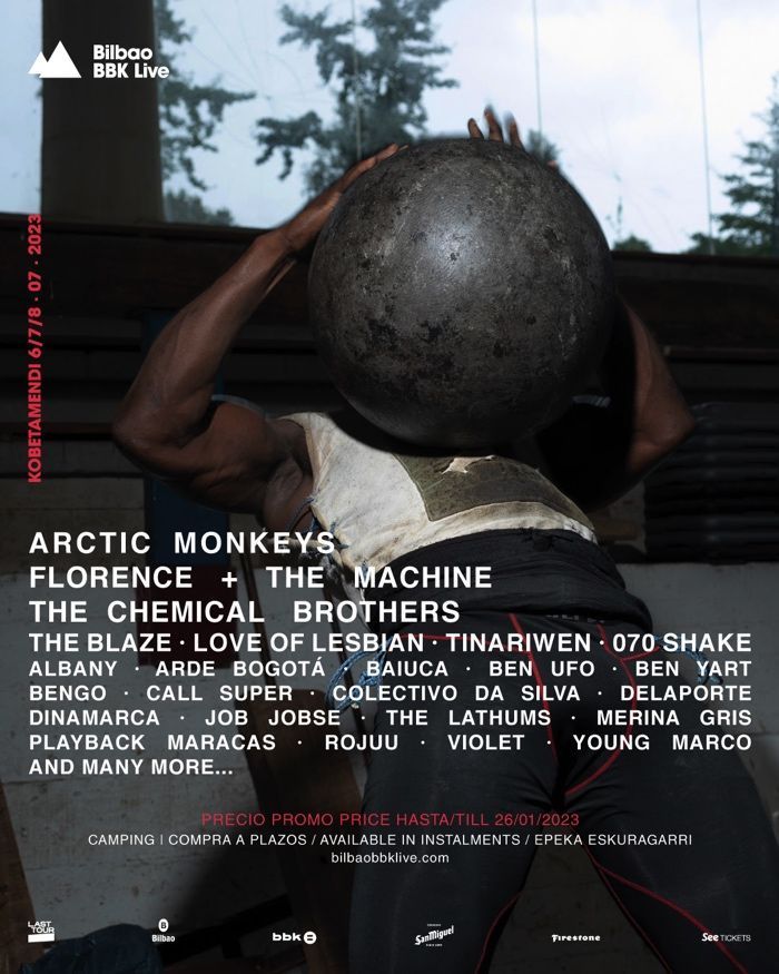 Mediante la fotografía de los harrijasotzailes Ousmane Dramé y Garazi Arruti, parte de la obra Supereuskadi de Vicente Paredes, Bilbao BBK Live presenta los primeros nombres que conforman el cartel de su decimosexta edición. Recién anunciada la presencia de Arctic Monkeys como primer cabeza de cartel del festival; hoy se suman 24 nombres más al line-up con Florence + The Machine, The Chemical Brothers y The Blaze encabezando las primeras líneas de Bilbao BBK Live 2023, que se celebrará los próximos 6, 7 y 8 de julio de 2023 en Kobetamendi.