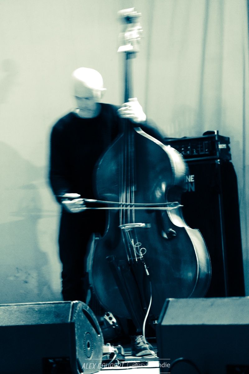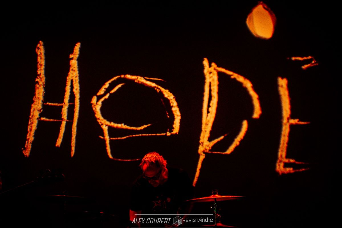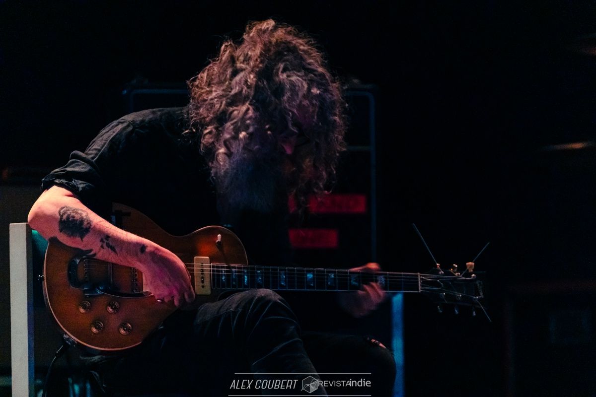 Estos tipos apenas pronuncian palabra, porque en su mundo no existen ni la cháchara vacía ni los discursos (verbales). Lo suyo es más bien como un ritual, una misa épica que sube de volumen y te vuela la tapa de los sesos justo cuando más abierto tienes el espíritu. El escenario, prácticamente a oscuras, parecía un refugio clandestino: en lugar de fresnels locos, leds y estrobos, lo que iluminaba era un juego de proyecciones en bucle que recordaban paisajes post-apocalípticos. Cada músico se mezclaba con esas sombras y te hacía sentir como si estuvieras flotando en medio de una tormenta eléctrica.
