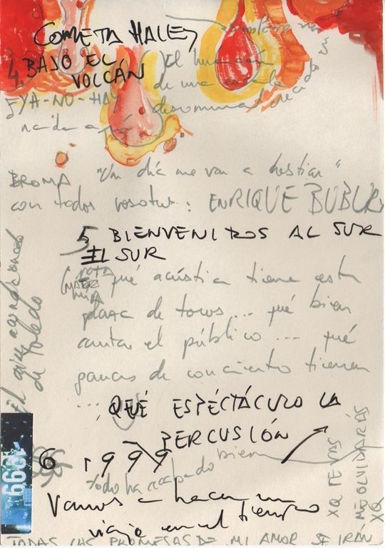 Curiosa la buena acústica de la plaza de toros, lo bien que cantaba el público y qué ganas de concierto teníamos todos, sin dejar de lado el espectáculo de la percusión de la mano (las manos y el cuerpo entero) de Marc Clos, simplemente, brutal.