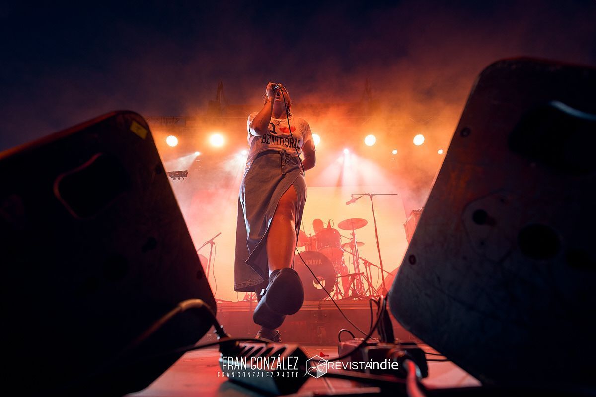 Calentita estaba la noche para dar paso a uno de los platos fuertes de la jornada. Cambio radical de estilos. Tiempo para el hip hop, el soul, el trap, la salsa y el swing de la mano de la argentina Nathy Peluso. Temas galardonados junto a una amplia gama de recursos escénicos y el magnético poderío de sus coreografías en las que descarga fuerza y sensualidad a partes iguales, pusieron patas arriba el escenario principal del Low.