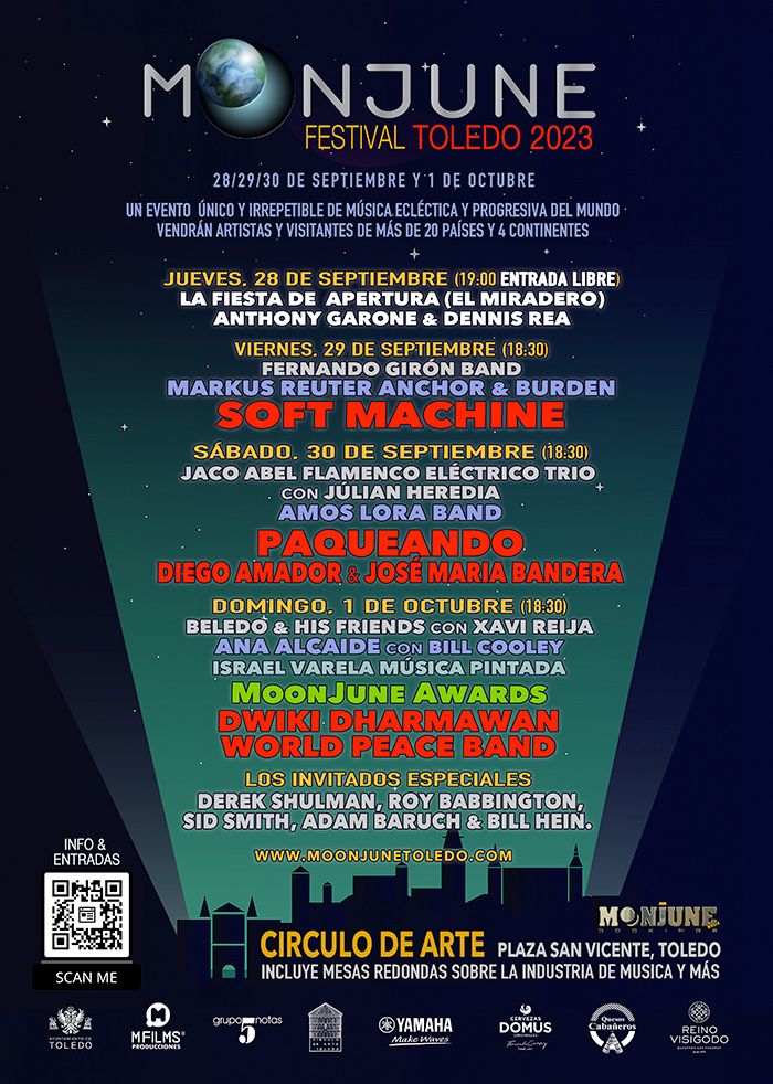 Los artistas de diferentes partes del mundo actuarán entre los días de 29, 30 de septiembre y 1 de octubre en el Círculo de Arte de Toledo, Plaza San Vicente, Casco Antiguo de Toledo. Soft Machine (Reino Unido), Anchor y Burden (Alemania), Fernando Girón Band (España), Jaco Abel Flamenco Eléctrico Trío (España), Ámos Lora Band (España, Cuba), Paqueando con Diego Amador y José María Bandera (España), Beledo & His Friends Band (Estados Unidos, Uruguay, Israel, Bélgica, España), Ana Alcaide & Bill Cooley (España, Estados Unidos), Israel Varela Música Pintada (México), Dwiki Dharmawan World Peace band (Indonesia, Israel, México), Dennis Rea & Anthony Garone (Estados Unidos)