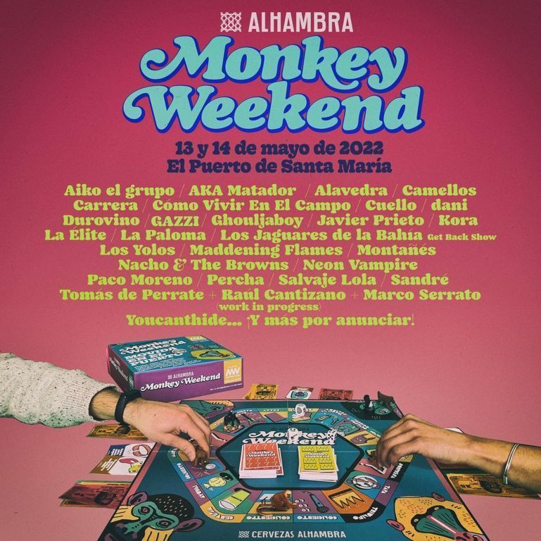 ¡Estamos de enhorabuena! Hoy viernes 18 de marzo, con una rueda de prensa celebrada en el Teatro Municipal Pedro Muñoz Seca de El Puerto de Santa María, se ha presentado en sociedad la próxima edición de Alhambra Monkey Weekend, un festival único en su especie. La cita, que como viene siendo habitual ha presentado además de sus primeros nombres confirmados también su nueva imagen, en esta ocasión en sintonía con su lúdica propuesta, y ha anunciado la primera novedad de esta su quinta entrega: ¡cambio de fechas! Hasta ahora, la cita gaditana tenía lugar a mediados de junio, pero este 2022 la fiesta, amigos, nos llegará algo antes: concretamente, el viernes 13 y el sábado 14 de mayo. Toda una alegría para aquellos y aquellas que esperábamos el retorno de este monumental sarao como agua, nunca mejor dicho, de mayo.