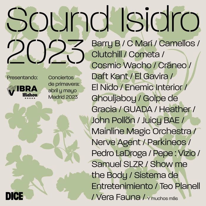 Para ir abriendo boca, soltamos los primeros nombres que formarán parte del cartel de un SOUND ISIDRO 2023 que, por un lado, vuelve a contar con el apoyo de VIBRA MAHOU, la plataforma de música de Mahou Cinco Estrellas que genera encuentros de calidad y conexiones en torno al directo; y, por otro, demuestra un año más que Sound Isidro no es un festival: es otra cosa. Una «cosa» que, por lo pronto, anuncia casi una treintena de artistas: 27, para ser exactos.