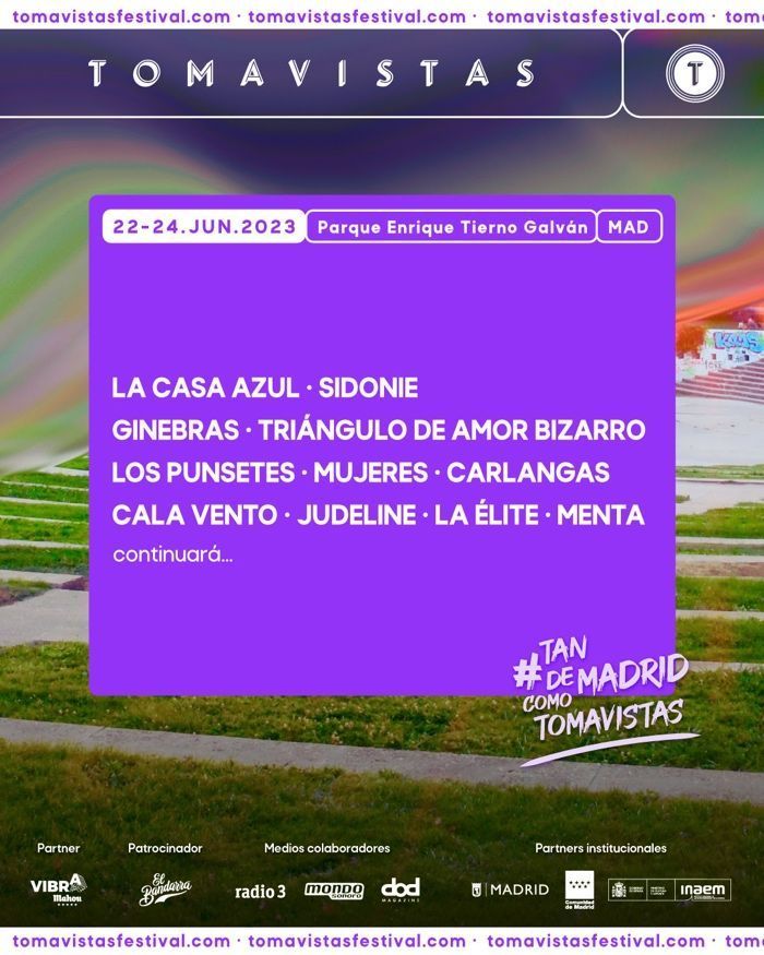 Comenzamos con las confirmaciones de nuestra próxima edición con La Casa Azul, Sidonie, Ginebras, Triángulo de Amor Bizarro, Los Punsetes, Mujeres, Carlangas, Cala Vento, Judeline, La Élite y Menta. Un lanzamiento inicial protagonizado por talento nacional y repleto de conciertos exclusivos.
