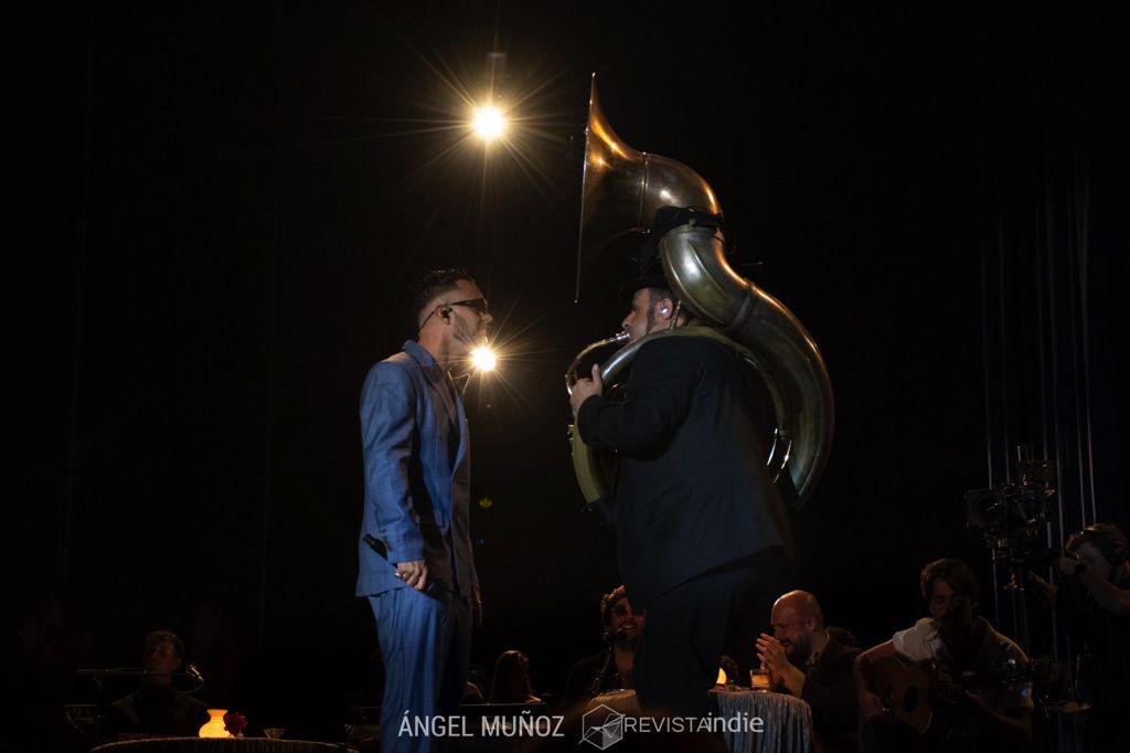 Tras la finalización de Zahara, llega el tan aclamado Puchito, sólo él podía montar un guateque en un escenario de un festival, brindar en champán y lanzar fuegos artificiales. Recuerdo escuchar comentarios del público alabándolo como “estamos ante un videoclib”, qué gusto, qué elegancia y qué profesionalidad a la hora de realizar este espectáculo. Lo hace de la mano de los cantaores Niño de Elche y José Carmona, entre muchos más artistas.
