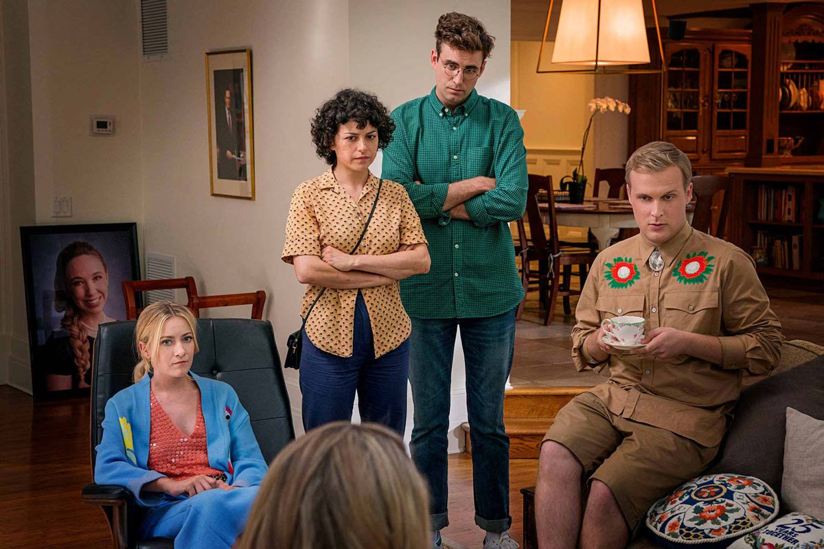Alia Shawkat (Arrested Development) es Dory, sobre la que recae el peso dramático. Parece como si en cada temporada descubriésemos a una Dory distinta que va descendiendo a sus propios infiernos. Si Dory es el drama en Search Party, Drew (John Reinolds), Portia (Meredith Hagner) y Elliot (John Early) son el surrealismo y el disparate. Elliot Gross se ha convertido en uno de mis personajes favoritos del humor seriéfilo. Al principio nos puede resultar solo una caricatura más de un homosexual histriónico hipster neoyorquino, pero es mucho más. La frase que le define la dice él mismo en la cuarta temporada: “Soy una persona haciendo de otra persona que interpreta a otra persona”; es un personaje desternillante. Y tampoco olvidemos al detonante de la búsqueda, Chantal, una auténtica Janice, odiosa y desternillante a partes iguales. Entre el reparto encontraremos también unas cuantas caras conocidas, como Jay Duplass o Susan Sarandon.