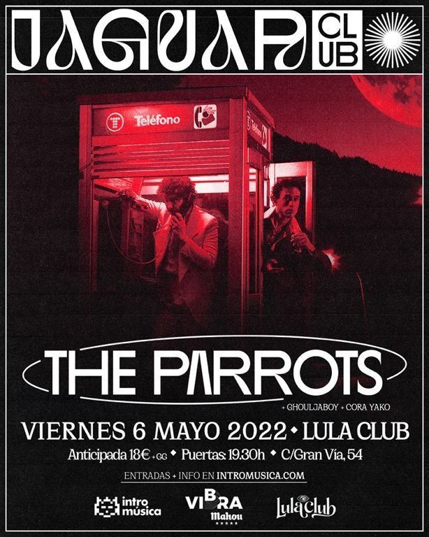 Tras el anuncio de las tres primeras fechas de Jaguar Club con La Bien Querida (sábado 12 de marzo) El Columpio Asesino (viernes 1 de abril) y Neuman (sábado 23 de abril), desvelamos una nueva fecha del ciclo:  THE PARROTS pasarán por el Lula Club el próximo viernes 6 de mayo acompañados de Ghouljaboy y Cora Yako.