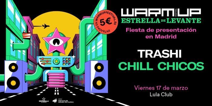 WARM UP Estrella de Levante celebra el próximo 17 de marzo la fiesta presentación de su próxima edición en la madrileña sala Lula Club, en Gran Vía, con Trashi y Chill Chicos. Una cita con la que la organización del festival busca calentar motores de cara a #WARMUP2023, una edición muy especial en la que el festival celebra su quinto aniversario con Franz Ferdinand, The Kooks, Hot Chip, Moderat o Vetusta Morla entre otros además el sábado 29 y domingo 30 de abril en La Fica (Murcia). Además, como novedad este año, el día anterior -viernes 28 de abril- se celebrará la Welcome V Aniversario con Kasabian, Ojete Calor, Miss Caffeina y ELYELLA.