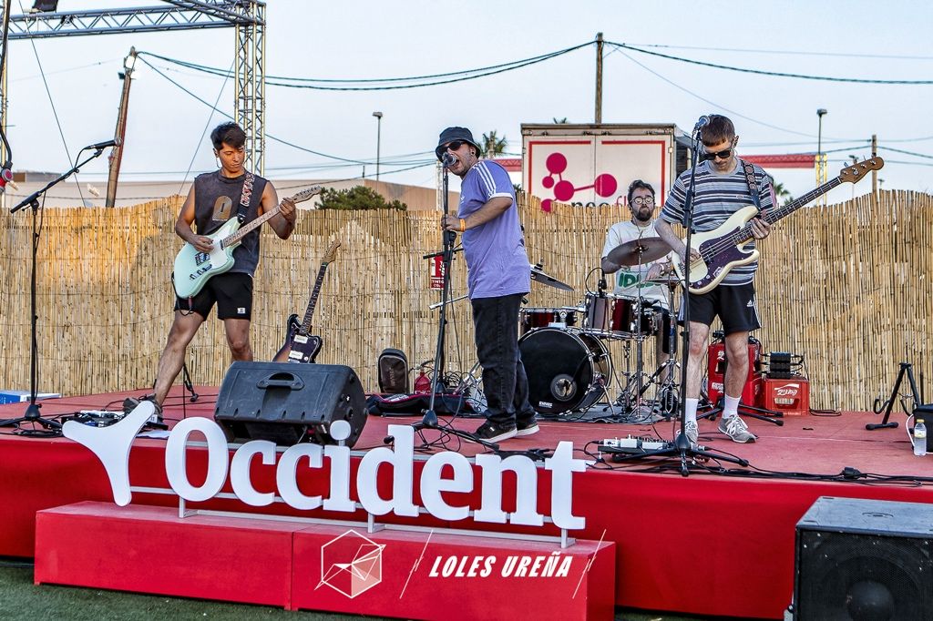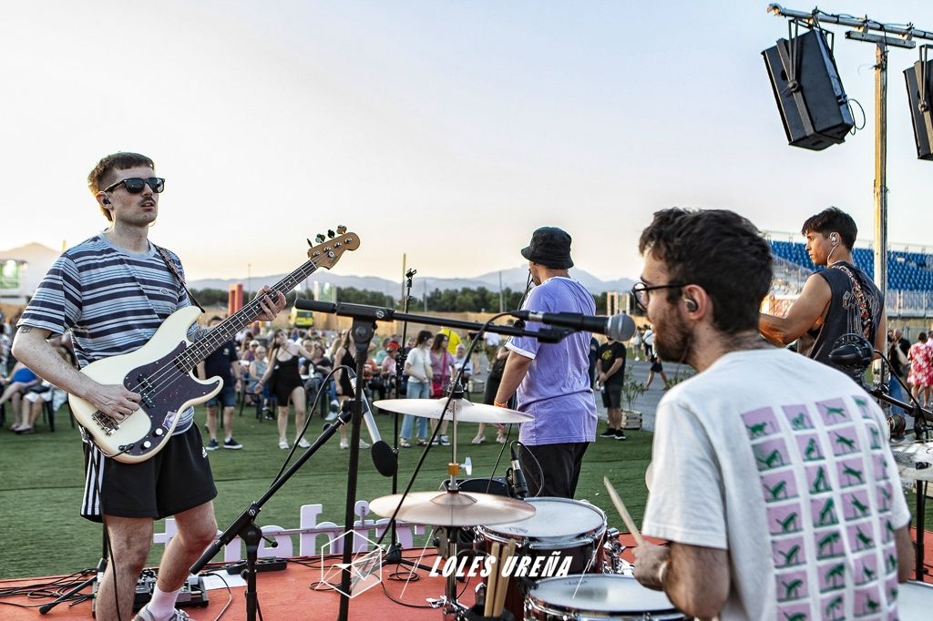 En el escenario Village, Becarios, banda alicantina formada apenas en 2023, abrieron la jornada con un set vibrante y fresco que ya está dejando huella en la escena local. Compuesta por Álvaro García (voz), James Lomax (bajo), Mario Santisteban (batería) y Franco González (guitarra), la banda presentó temas de su primer EP, La Casa Encendida, producido por Aleix Turon de Cala Vento y masterizado por Víctor García. Canciones como Rob Gordon y Opencorlograron conectar con un público que rápidamente se sumó a su energía, reflejando la madurez y creatividad de un grupo con un futuro prometedor. Su música, mezcla de influencias alternativas y un toque personal, resonó con fuerza en la noche alicantina, augurando un crecimiento sólido para este cuarteto.