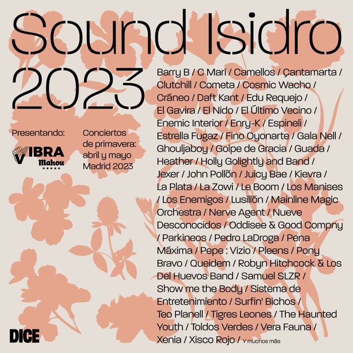 En total, ya van 56 artistas confirmados para SOUND ISIDRO VIBRA MAHOU 2023. Y a los ya anunciados Barry B, C Marí, Camellos, Clutchill, Cometa, Cosmic Wacho, Cráneo, Daft Kant, El Gavira, El Nido, Enemic Interior, Ghouljaboy, Golpe de Gracia, GUADA, Heather, John Pollõn, Juicy BAE, Mainline Magic Orchestra, Nerve Agent, Parkineos, Pedro LaDroga, Pepe : Vizio, Samuel SLZR, Show Me the Body, Sistema de Entretenimiento, Teo Planell y Vera Fauna; se suman ahora casi tres decenas de artistas de diferentes registros, circuitos y generaciones, que poblarán las salas madrileñas en los meses de abril y mayo.