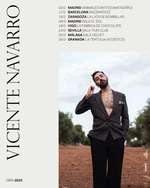 Vicente Navarro, que actualmente se encuentra inmerso en la grabación de su segundo álbum, anuncia su ansiada gira por salas con la que recorrerá varias ciudades de España. Tras varios años de incertidumbre en el ámbito de la música en vivo, sus seguidores podrán disfrutar al fin de los temas de ‘Casi tierra’ en directo, además de alguna que otra sorpresa. Entradas a la venta en Wegow