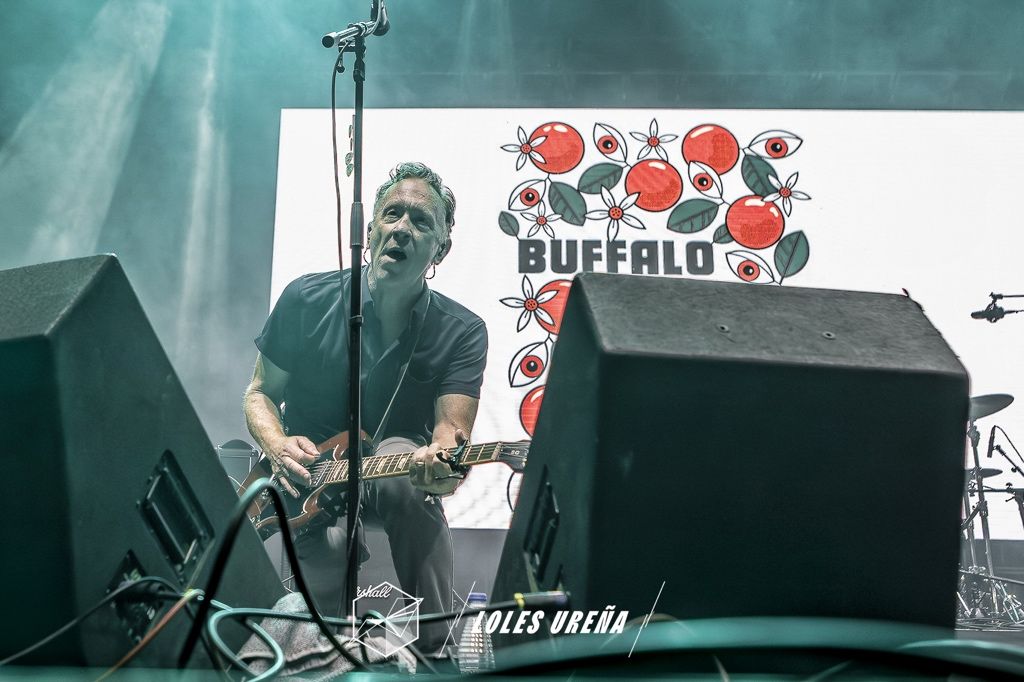 El primer plato fuerte de la jornada lo sirvió Buffalo Tom, banda a la que intuía que iban a tener buen directo, como así lo confirmaron. Trío de guitarra, bajo y batería muy bien engrasado en el que el bajo hace coros, pero también canta alguna canción. Ambas voces brillaron a la altura del concierto que dieron dejando claro que son la misma banda desde que empezaron en 1987. Con 10 álbumes en sus costillas, estos bostonianos incluso pidió a la audiencia qué canción querían que hicieran. De esas cosas que ocurren en el Visor. Acto seguido subieron Ash al escenario y la afición que deseaba verlos en directo comenzó a vibrar con los norirlandeses. Quien escribe esta reseña quizás no supo apreciar la vehemencia con la que los fans acérrimos consideraron el concierto como el mejor del viernes. Salvo la colección de temas del mítico 1977, el resto de repertorio me parece que tiene poca chispa. Pero oye, esto como los colores, que hay muchos y cada uno en su grado. De lo que no cabe duda es de la entrega de la banda sobre el escenario. Y eso se notó en el ambiente. Para acabar con la tacada de nombres míticos del viernes, los Happy Mondays se hicieron con el control de la nave. Otra edición más en la que MADchester aterriza en la costa mediterránea para uso y disfrute del sonido y ritmos bailongos. Con Shawn Rider y su voz venida a menos, pero acompañado de una enorme voz femenina, hizo que los temas de siempre hicieran bailar al personal, aunque algo descafeinados, pero siempre bailongos. Y Bez, a las maracas, con esa encogida de hombros y baile espasmódico, sonriendo y animando al personal a bailar, sin parar ni un momento. Yendo de un lado al otro del escenario. Qué queréis que os diga, me pareció otro de los grandes momentos imborrables del festival. Y con todo el alegrón en el cuerpo, pues resulta que esta vez no había DJ que acompañaran la última cerveza del viernes, tan solo un señor que nos invitaba a abandonar el recinto. ¡Vaya chasco!