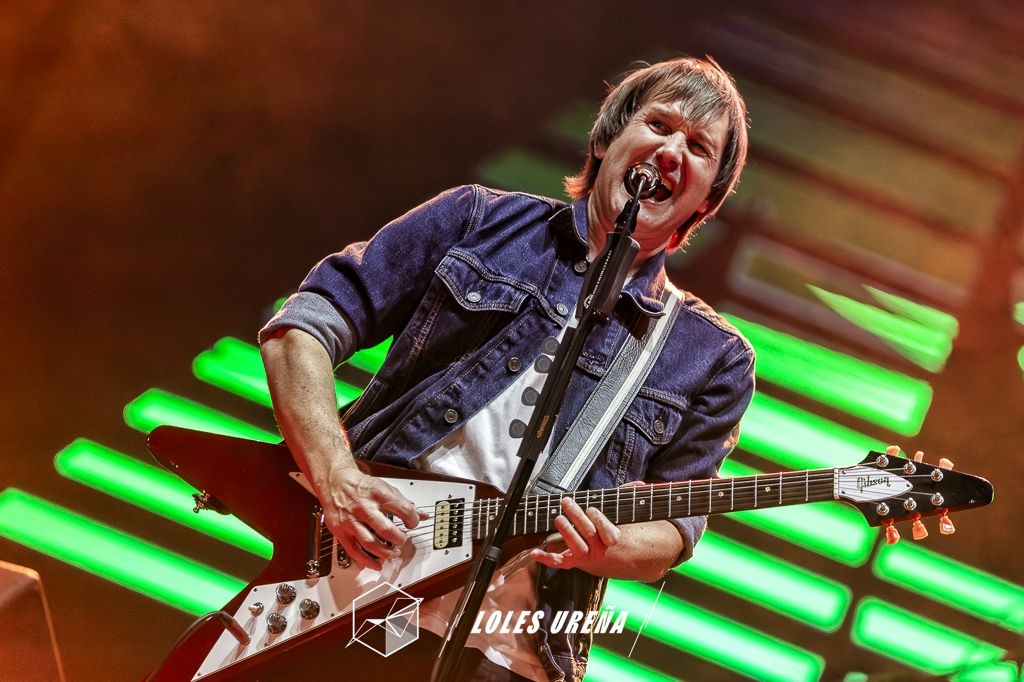Y cuando ya estaba todo preparado para uno de los platos fuertes del festival, apareció Evan Dando girando sobre sí mismo como si le hubieran empujado desde un lateral. Embutido en una americana que le quedaba un tanto apretada, comenzó a desgranar los temas de The Lemonheads. Desde el principio me dio la sensación de que a Evan le habíamos invadido su casa y le habíamos insistido en que se tocara unos temas. Él habría accedido con cierta desgana, pero ya que estábamos allí, pues nos daba el gusto. Consiguió que todo fuera bien, a pesar de sus limitaciones de voz, que hicieron que se fulminara la melodía de “Into your arms”, pero todos se lo perdonamos un poco. Al fin y al cabo, le habíamos sacado de la cama y nos estaba haciendo un favor. Hasta que le pareció una genial idea intercambiar la guitarra por el bajo (en un soberbio movimiento coreográfico con el bajista) para interpretar un tema irregular, derribar el micrófono de una patada y devolver el bajo a su dueño bastante desairado. La cosa no funcionó. Pero tampoco cuando se quedó solo en el escenario y se arrancó con un tema de Oasis. Así, como sorpresa y guiño está bien, pero bien pensado, The Lemonheads no necesitan de nadie para seguir con su incontestable repertorio. También se lo perdonamos (y disfrutamos el tema), pero la serenata que le siguió con la guitarra acústica durante 20 minutos fue, cuando menos, difícil de aguantar. La situación se parecía más a la de estar escuchando a un colega que va pedo y nos quiere tocar sus hits y, por respeto, la audiencia le escucha mientras murmura cuánto más va a durar esto. Por suerte, volvió la banda tan solo para confirmar la ruina que se estaba fraguando. Volvieron al repertorio, pero a nuestro antihéroe se le olvidaba apagar o encender el pedal de turno para que sonara la intensidad que pedía el tema, dejaba de rasgar la guitarra para regalar púas como un rey mago regala caramelos en la cabalgata. Todo muy bizarro. Hasta que llegó el final de la hora y media de concierto. Ahí tocaron uno de los temas nuevos “Togetherness is all I’m after” (vamos que el título parece un irónico epílogo a la historia) y, sorprendentemente, empezó a sonar fenomenal. Con la intensidad y ganas que se esperaba. Por fin, nos mirábamos con complicidad mis amigos y yo. También le perdonábamos que tuvieran que empezar el tema de nuevo, por lo que fuera. Lo que no sabía nuestro héroe imperfecto es que era el final de su turno, y le pareció fatal. Acabó el tema indignado, dejó la guitarra en el suelo y salió por el lado opuesto del escenario por el que había entrado dando giros al principio del concierto. De traca. Muy punk. Recuerdos imborrables del Visor. Otro más. Pero vamos con la traca final.