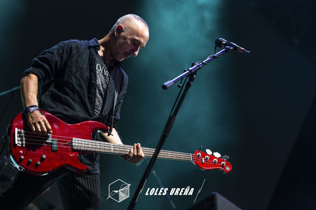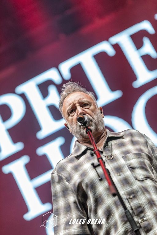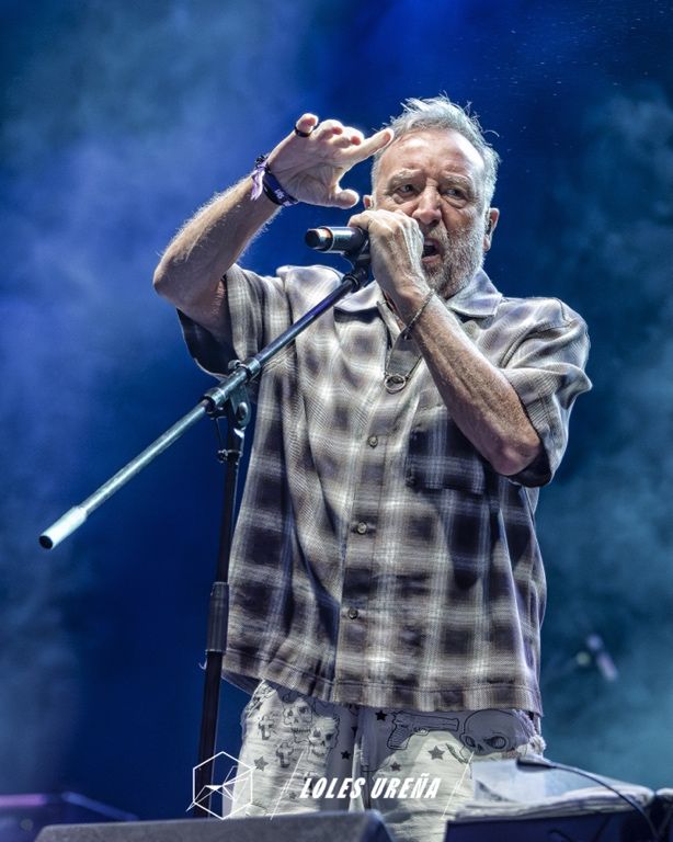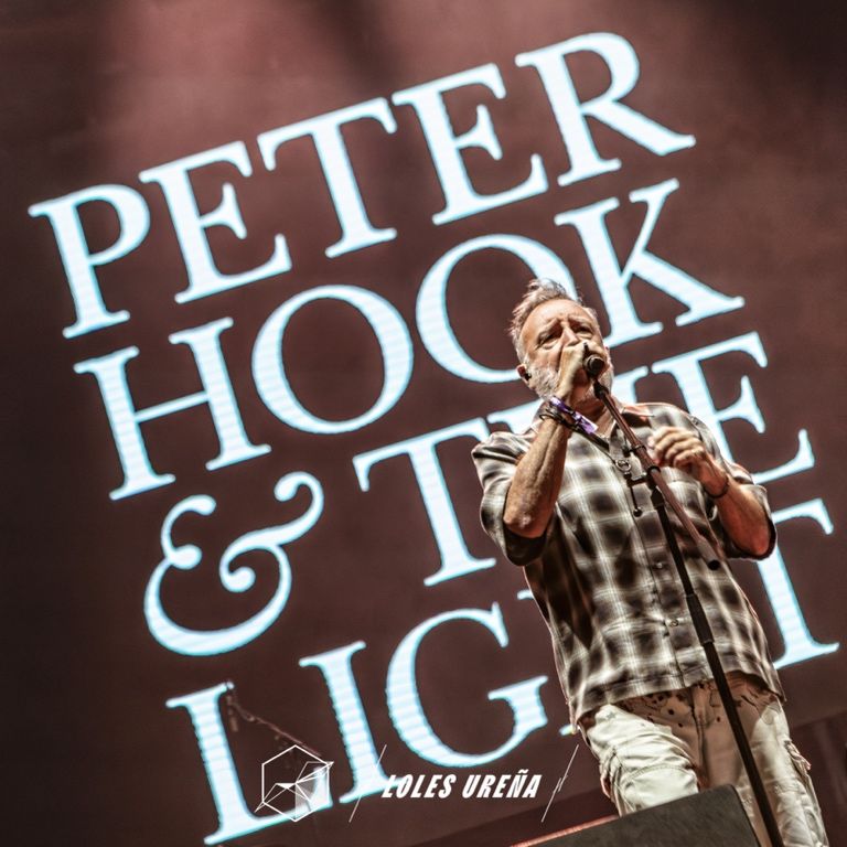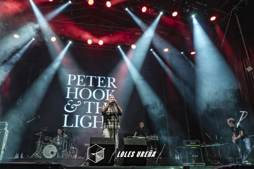 Estupefactos por lo que habíamos presenciado, antes de que empezara Peter Hook and The Light, mis amigos y yo llegamos al acuerdo de que no habíamos visto todavía ningún concierto memorable como sí nos había pasado en otras ediciones (James, dEUS, Gigolo Aunts, OMD, Suede,…) y ahora empezaba algo que prometía. The Light salió de riguroso negro y muy elegantes. Peter Hook no. Con la estampa que todos podemos imaginar de un inglés en Benidorm, a saber: bermudas pirata gris claro con cordones al final de la pierna, camisa de cuadros gris más oscura por los cuadros negros que la decoraban, ancha con una suerte de leyenda bordada en letras rojas en la espalda. La estampa era casi caricaturesca, pero el sonido era arrebatador. Empezaron con el repertorio de Joy Division ejecutado a la perfección, temazo tras temazo: Warsaw, Interzone, Isolation, She’s lost control. Peter hacía lo que podía con su maltrecha voz, apoyada por la voz del guitarrista que suplía muy bien las carencias. Y cuando acababa el tema, Peter se sentaba en la tarima de la batería, se abría de piernas y se encendía un cigarro para contemplar a la audiencia. Eso lo hizo en hasta cuatro ocasiones. Su actitud no estaba a la altura del resto de la banda. Pero se lo perdonamos (también a él) porque esas contundentes y enervantes líneas de bajo habían salido de sus dedos, de su cabeza, de su alma y se podía permitir el lujo de ir vestido como quisiera, fumar lo que quisiera y sentado como le viniera en gana. Él sabía que estaba sonando perfecto y que la gente se lo estaba gozando. Sí, estaba siendo el concierto memorable del VisorFest ’25. Cuando acabó el asunto con el mitiquérrimo ‘Love will tear us apart’, se acabó la fiesta y se recogieron instrumentos y encendieron luces. Nadie contaba con los bises, ya no ocurren, pero… apareció Peter en el escenario. ¿Se va a hacer un bis? se oía decir y muchos nos dimos la vuelta. No. No era un bis. Peter se había dejado el tabaco en la tarima de la batería. Se sentó, se volvió a sentar con las piernas abiertas y se encendió otro cigarrillo. El resto ojipláticos, él henchido de gloria. Se levantó y saludó al personal satisfecho de saber que había sido un gran concierto.